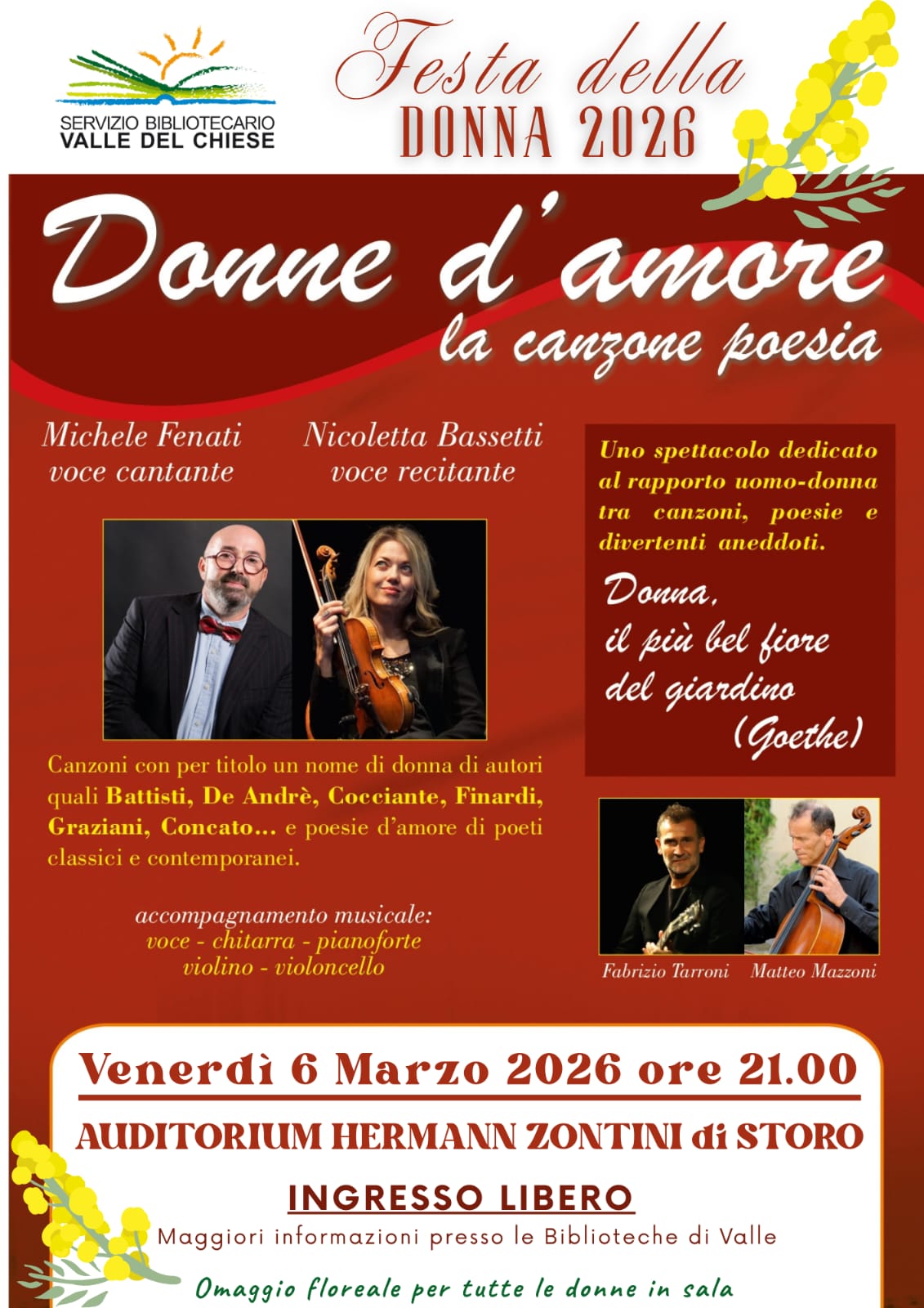 Donne d'amore - la canzone poesia. Spettacolo dedicato al rapporto uomo-donna tra canzoni, poesie e divertenti aneddoti.