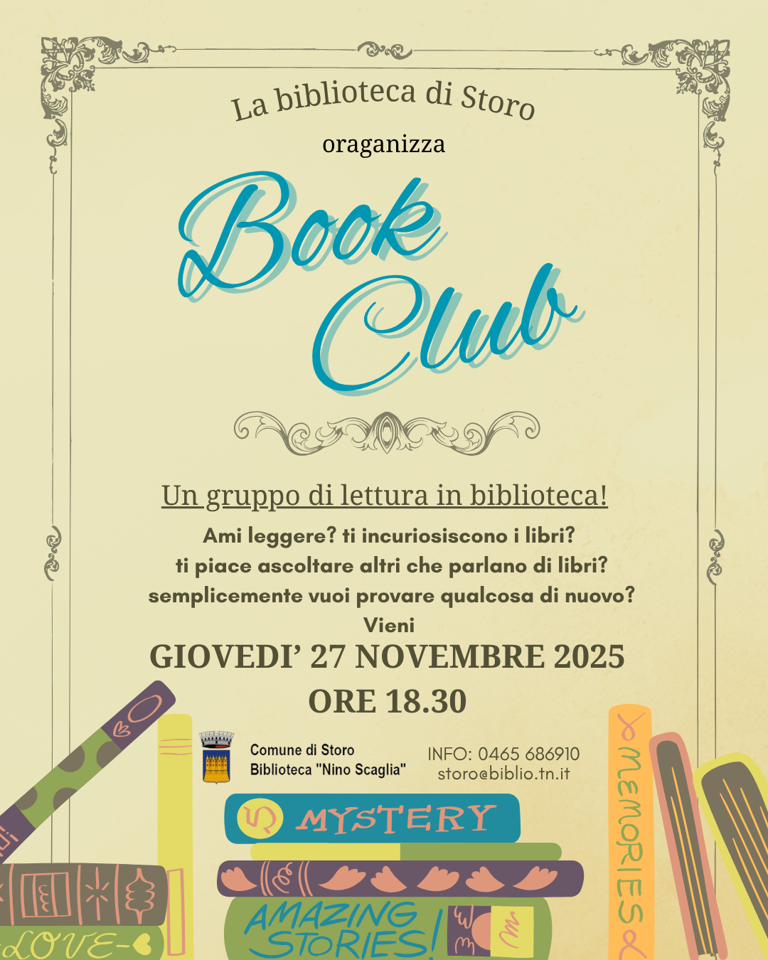 Cos'è Iniziativa della Biblioteca Nino Scaglia di "Storo" per presentare l'iniziativa Book Club! Gruppo di lettura in biblioteca.