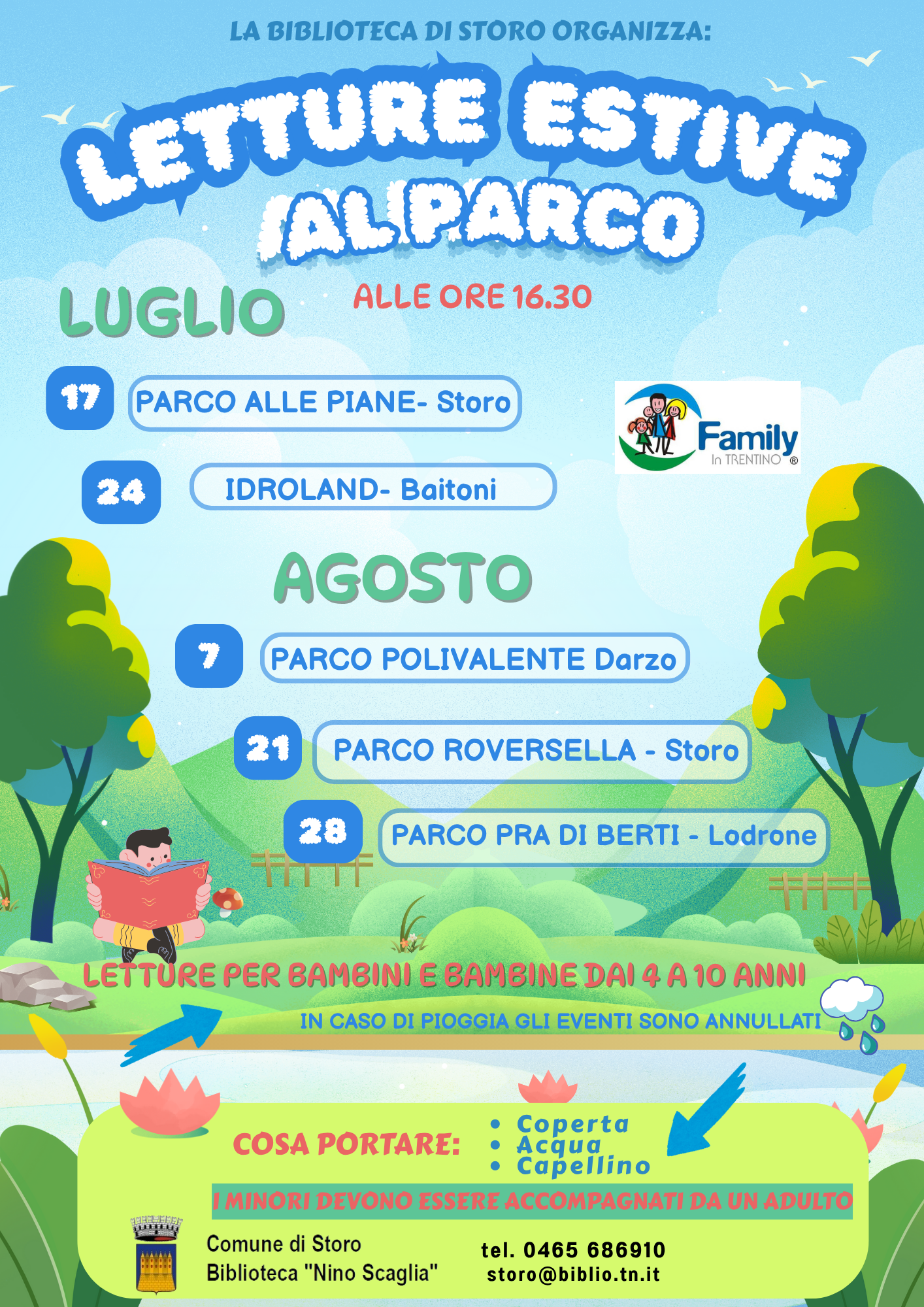 Parco Prà di Berti a Lodrone ore 16.30 Letture per bambini dai 4 ai 10 anni.