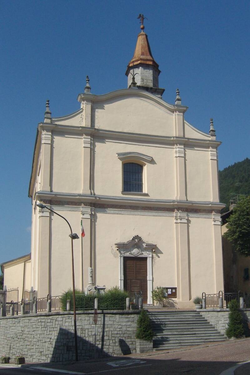 La prima pietra della parrocchiale di S. Giovanni Nepomuceno fu posta il 14 maggio 1754, ma i lavori di rifinitura e di completamento si prolungarono fino al 1777 (data sul portale principale). Le volte e i pennacchi dell’interno furono affrescati da Bartolomeo Zeni di Verona nel 1769: nel presbiterio raffigurò la SS. Trinità e i quattro Evangelisti con i loro simboli; nella navata S. Giovanni Nepomuceno in gloria, le quattro Virtù Cardinali con i loro simboli, i Santi Arcangeli, l’Angelo Custode; nella lunetta del presbiterio il martirio di San Vigilio.